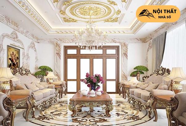 Phòng khách chuẩn quý tộc được thiết kế theo phong cách cổ điển